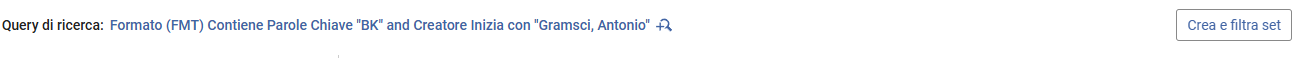Cliccare su Crea e filtra set, si apre una finestra di dialogo e inserire i dati richiesti (nome significativo, eventuale descrizione e nota, lasciare pubblico e non privato), salvare