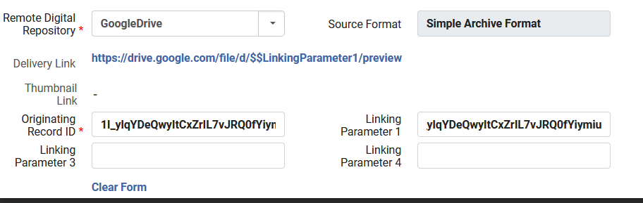 E' possibile aggiungere una rappresentazione digitale a un record senza necessariamente assegnare quel titolo a una collezione di Alma Digital. Nell'esempio che segue, la biblioteca ha copie fisiche, ma ha anche un file PDF che vuole rendere accessibile agli utenti in OneSearch. La rappresentazione, in questo caso un PDF di 6 pagine, è depositata in Google Drive.