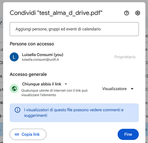 Per poter essere visualizzato da tutti gli utenti il file deve essere accessibile a Chiunque abbia il link.